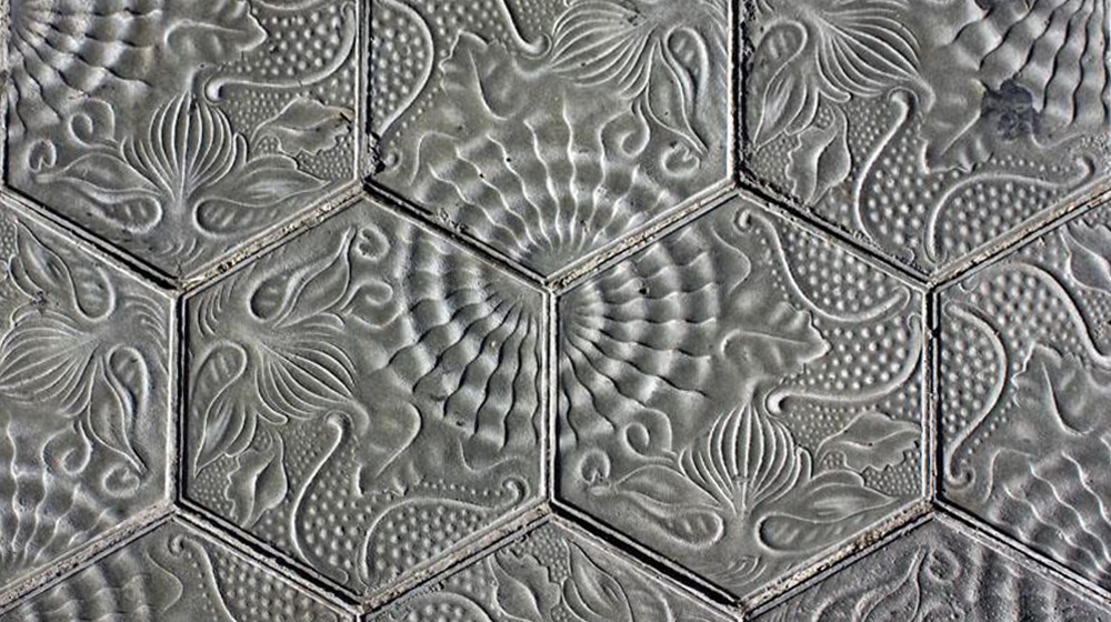 Detalle de las formas hexagonales del muro de The Circular Lab.
