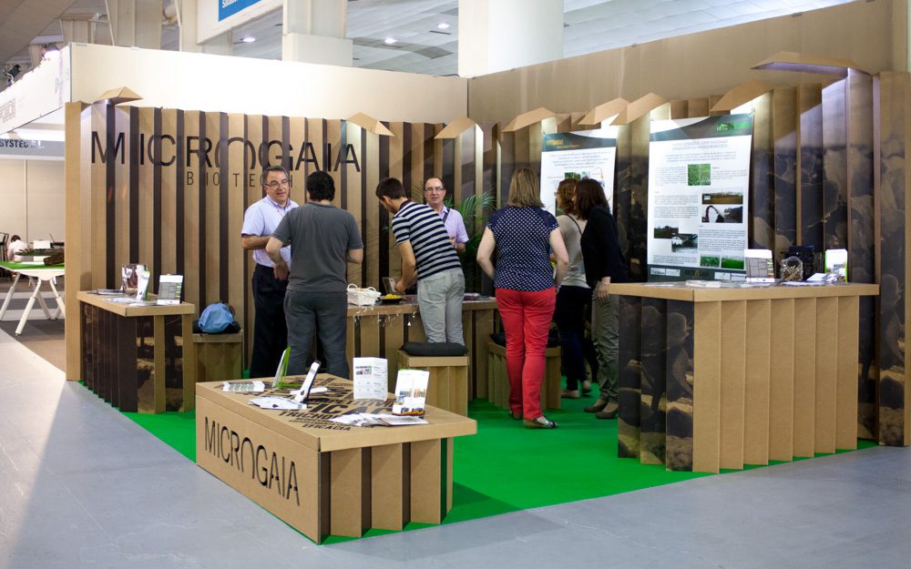 El Palacio de Ferias y Exposiciones de la Región de Murcia (IFEPA) suele acoger cada año el desarrollo de FAME-Innowa : Feria Agrícola del Mediterráneo. Allí se reúnen las empresas líderes de tecnología agrícola para interactuar. En esta feria llegamos a diseñar tres buenos ejemplos de stands para ferias de agricultura en una misma edición: Microgaia, Likitech y Salinas & Pérez. Eso implica que utilizáramos diversas técnicas de diseño en cartón y algunas piezas de mobiliario de nuestro catálogo. Traseras plisadas con mesas y taburetes a juego, mostradores, expositores personalizados, mesas cuadradas y sillas Taray.