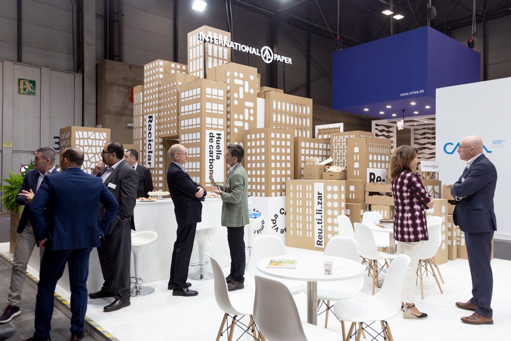 La feria del sector de frutas y hortalizas Fruit Attraction es toda una referencia internacional para el sector agrícola. Se celebra cada año, no para de crecer en espacio y participación y abarca todo el recinto de IFEMA, repartiendo su actividad en varios de sus pabellones. Los stands y diversos espacios que la componen son cada vez más ecológicos. El diseño en cartón es la herramienta ideal para cubrir las necesidades sostenibles de las empresas en este contexto. De hecho, es habitual que trabajemos con varios clientes a la vez en esta feria. Pink Lady, International Paper, Agotzaina o Mercajara son algunos ejemplos.