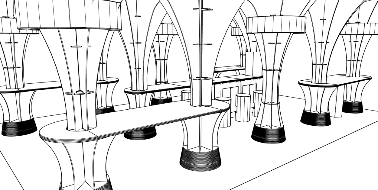 During development, we built a full scale prototype of the main constructive detail. This prototype focused on one of the structural columns that supported the work surfaces. Since the design relied on repeating this element, validating it ensured the system worked as a whole