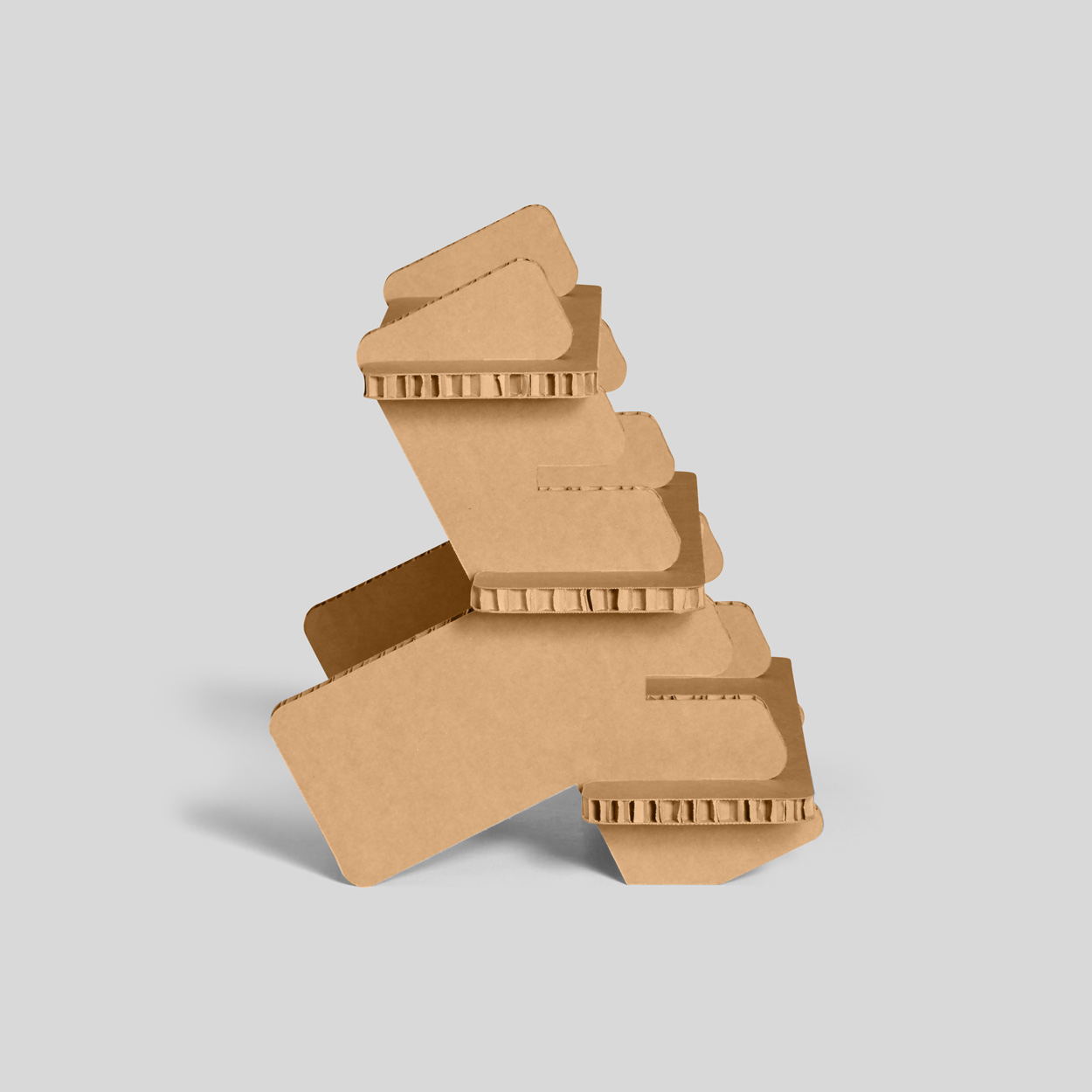 - Fabricación digital con plotter de corte. Acabado en marrón natural kraft o blanco.