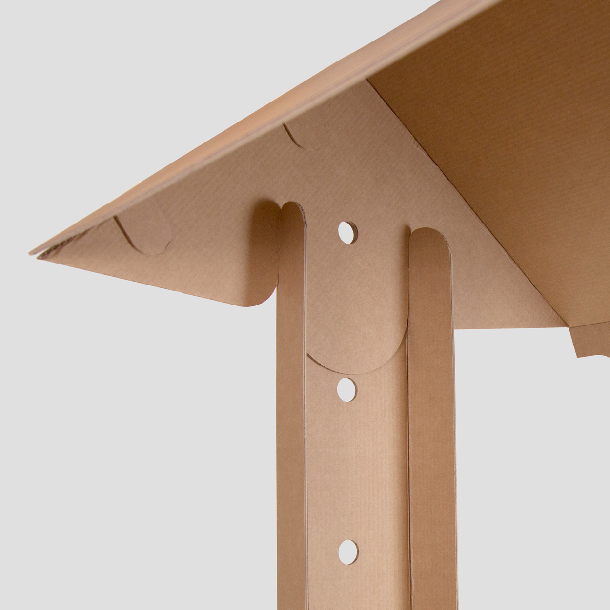 Una silla de cartón, por ejemplo, puede resistir hasta 120 kg de peso. Cada producto