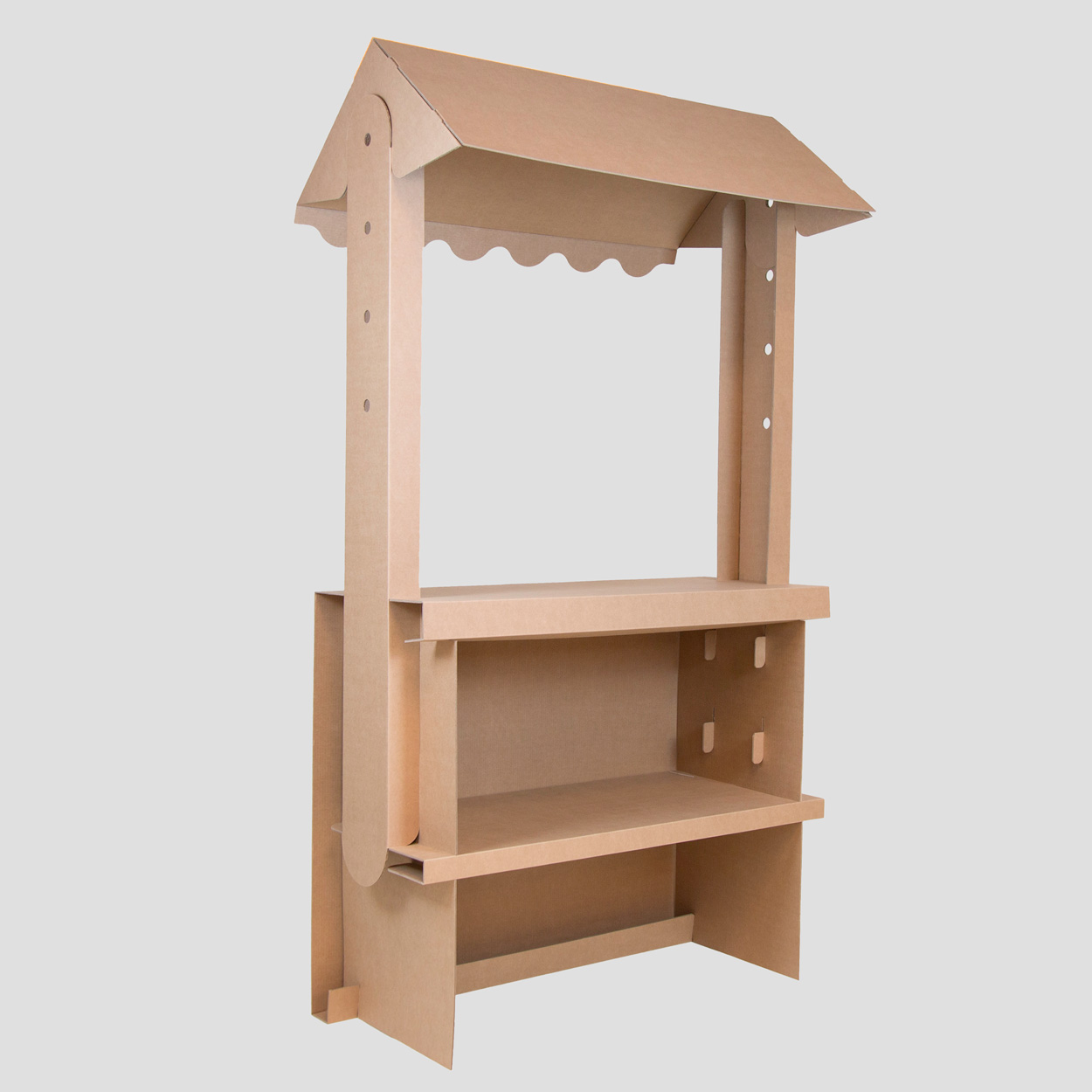 El producto se entrega en un paquete plano con instrucciones de montaje. Reutilizable y 100% reciclable. Incluye estantería bajo el mostrador para almacenaje. Diseño estructural y producción en cartón certificado. Fabricado en España. Consúltenos sobre posibilidades de personalización con gráfica, troquelado, etc.