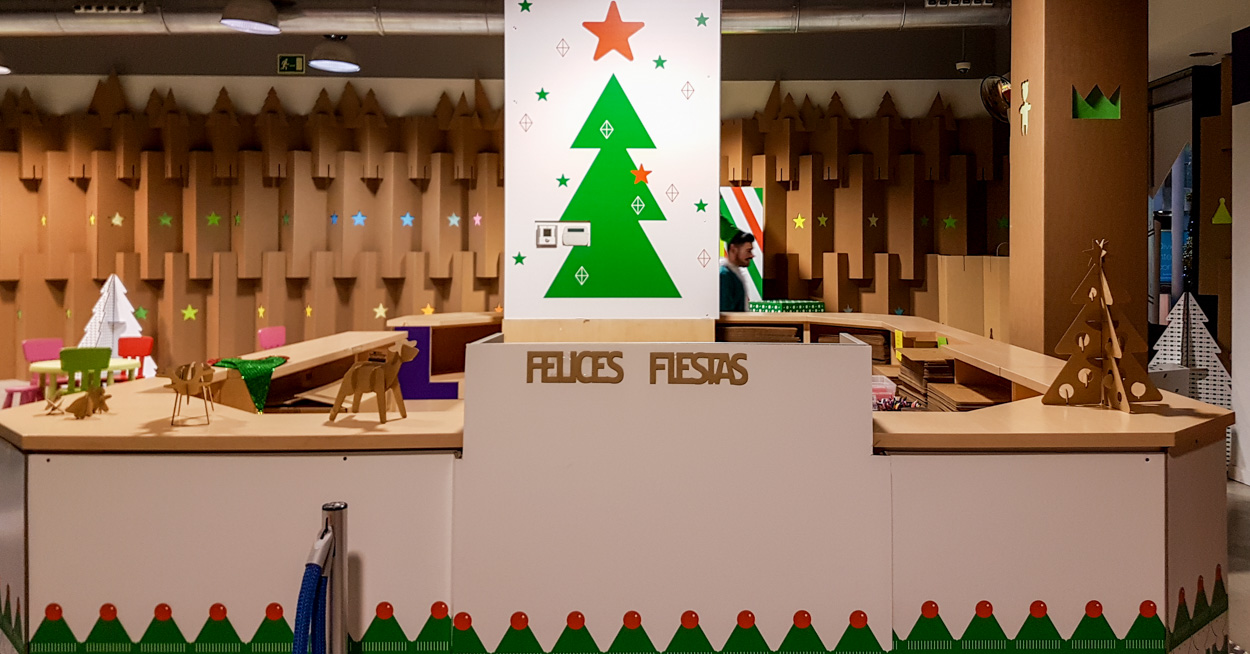 Decoración de navidad para centro comercial. Diseño sostenible en cartón