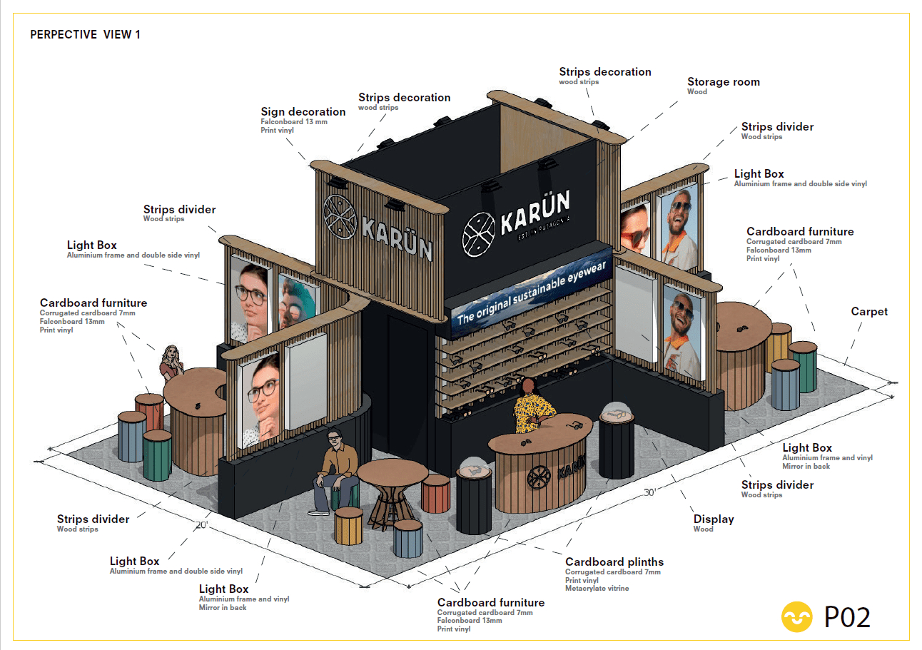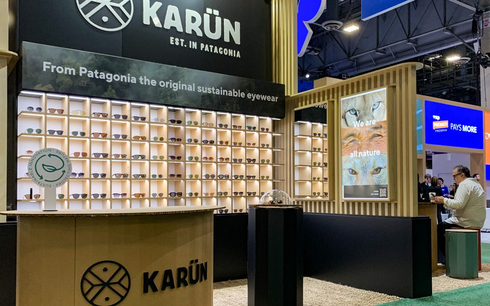 Se calcula que aproximadamente un tercio de la población mundial necesita usar gafas. Eso genera un gran mercado en torno al cuidado de la vista, que se refuerza con la interacción en ferias profesionales. Vision Expo West es una de las más importantes en la Costa Oeste de Estados Unidos. Con motivo de su presencia allí, la marca de gafas ecológicas Karün nos contactó para diseñar su espacio. Y así fue como acabamos realizando un stand ecológico en Las Vegas.