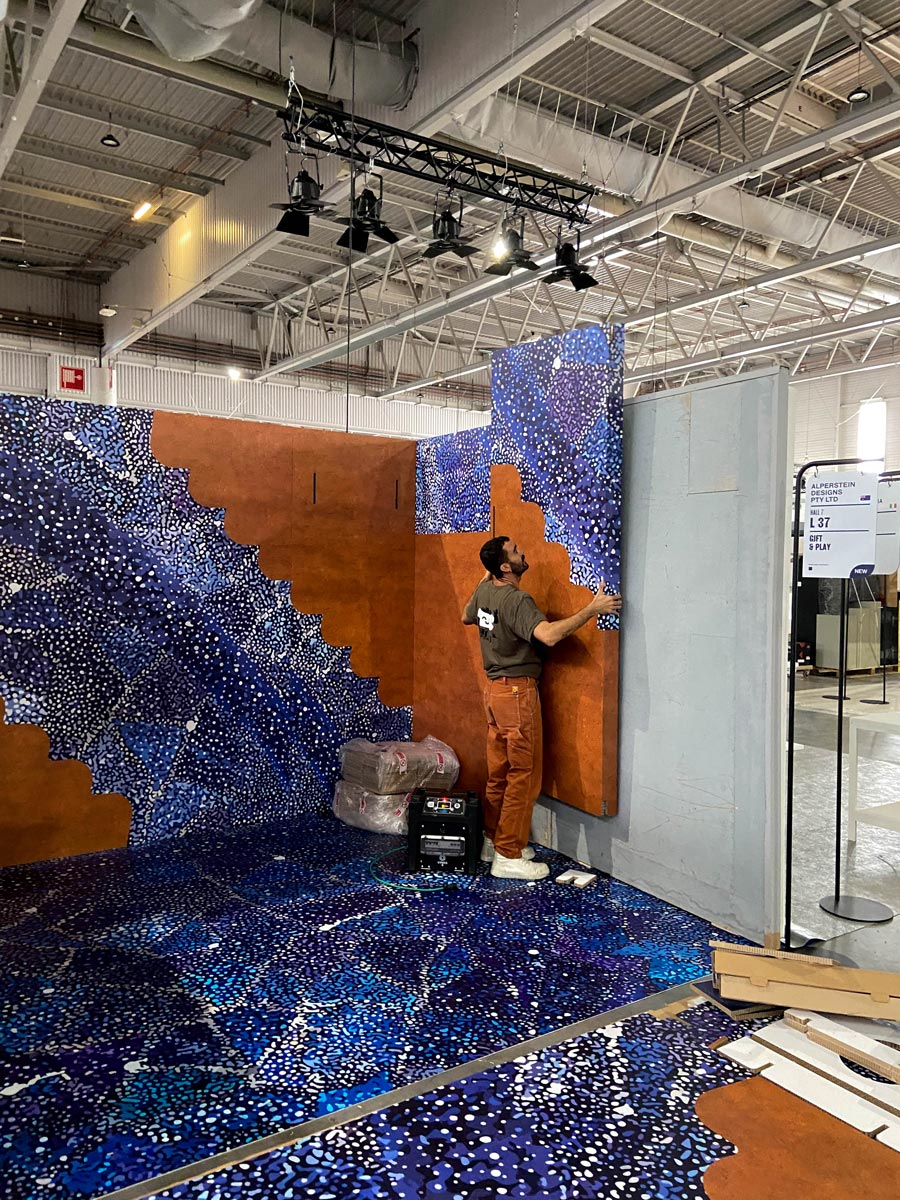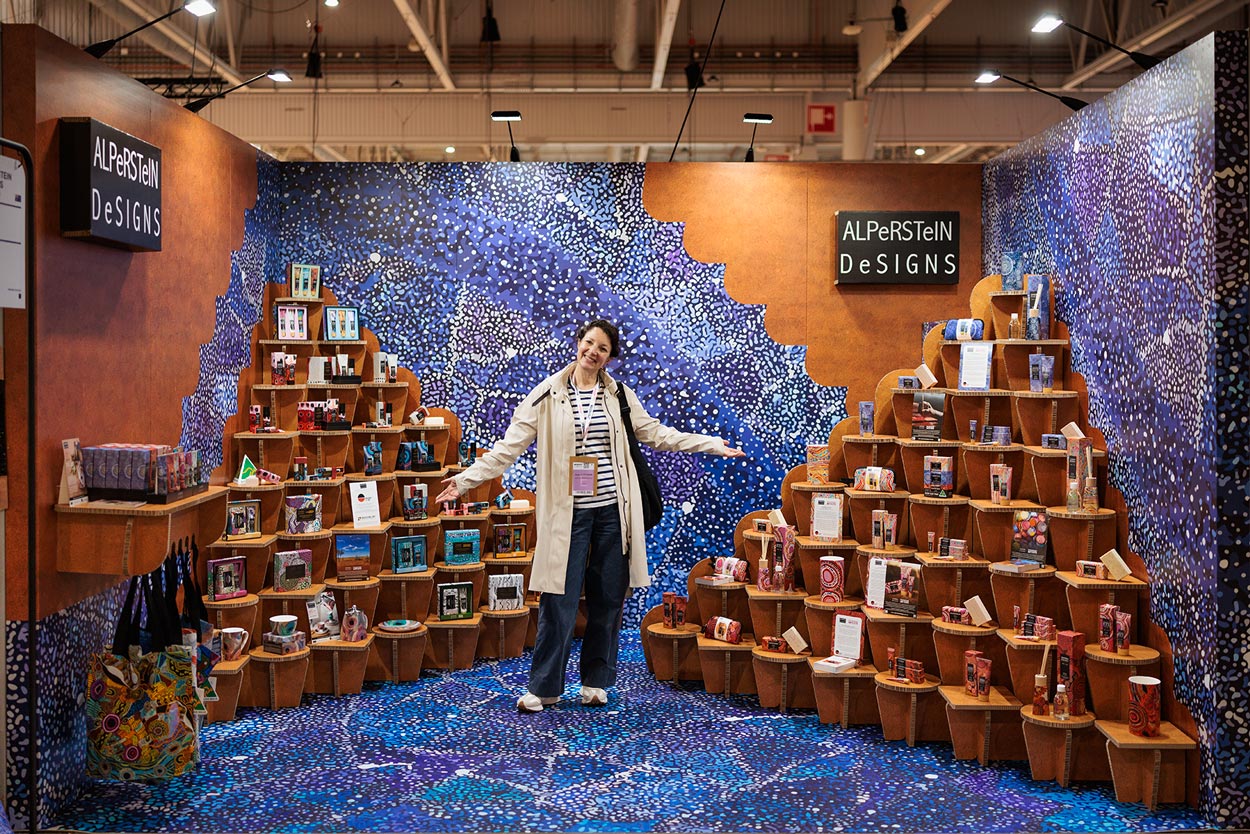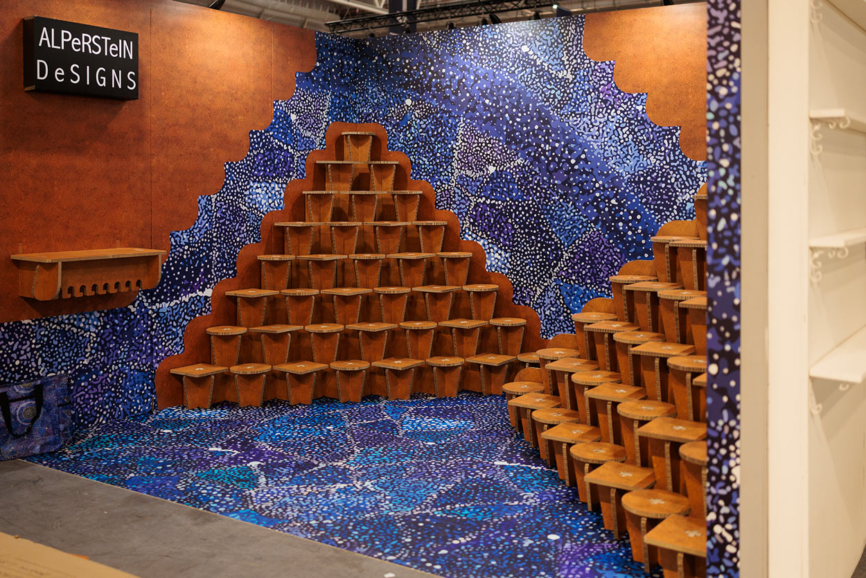 Alperstein Design, marca australiana de cosmética, textil y menaje de hogar caracterizada por sus estampados de arte indígena, apostó por un stand de 3×4 metros para su aparición en la feria Maison et Objet en París.