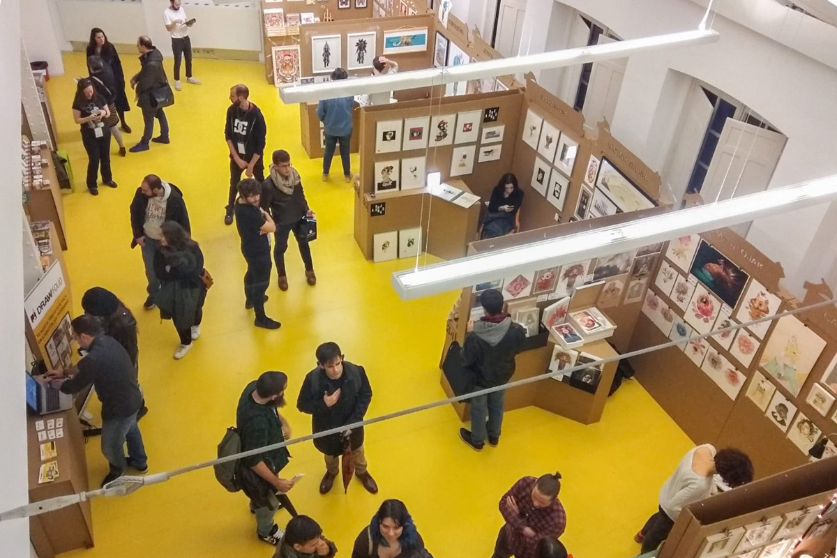 En esta edición nos sumamos al empeño de Ilustrísima de consolidarse como un evento sostenible de referencia. Tras 6 ediciones se convirtió en uno de los mercados anuales de dibujo más importantes de Madrid. En cuanto al diseño de los stands, planteamos la división del espacio como en la anterior edición, incluyendo algunos cambios en el troquelado de la parte superior. De nuevo, aprovechamos ese espacio para personalizar cada puesto con el nombre de su artista correspondiente.